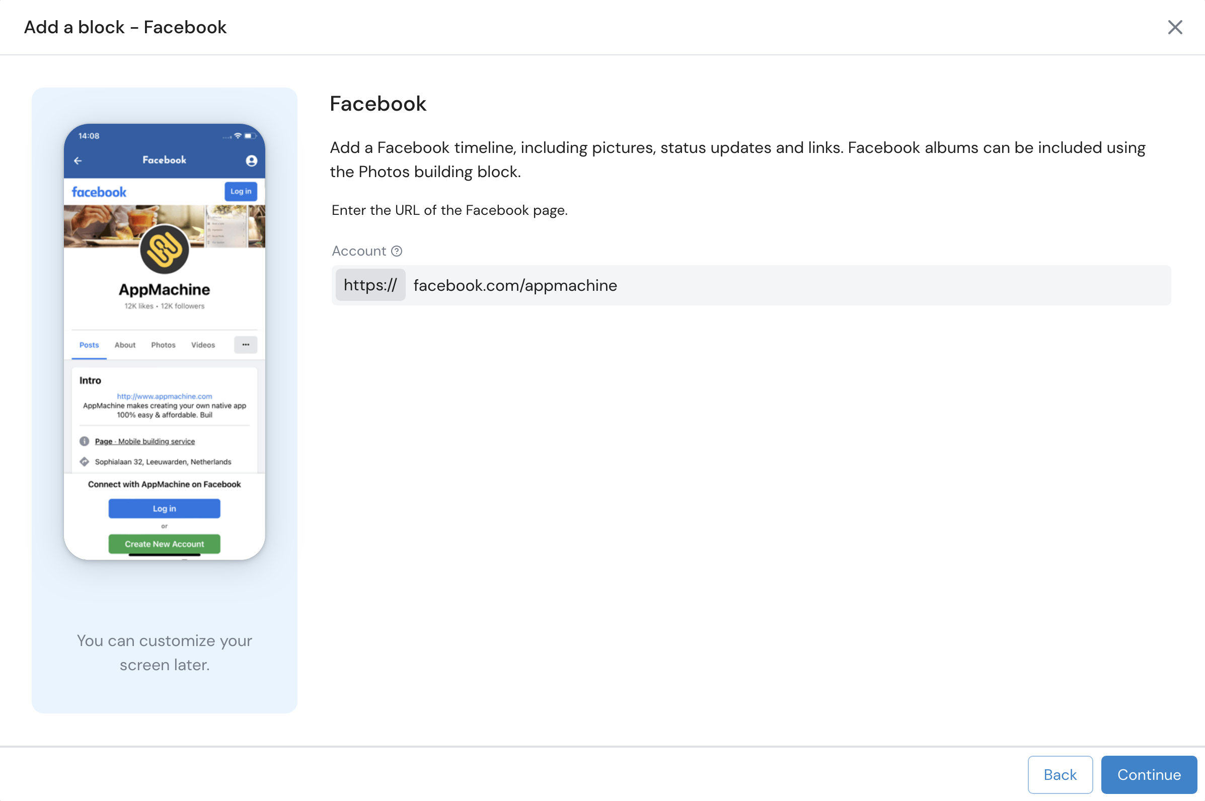 ### **The Facebook building block Settings** <a href="#configure" id="configure"></a>