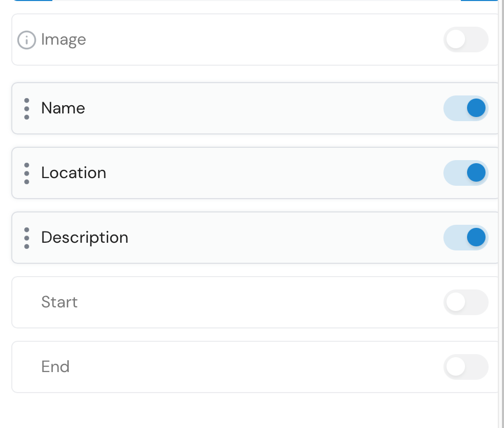 8. On the List block you can Enable or disable information to show in the list using the switches. \ <img src="https://2636455530-files.gitbook.io/~/files/v0/b/gitbook-x-prod.appspot.com/o/spaces%2F2wzy1sO41plYrfJfaAhN%2Fuploads%2FBjuyJc8TIiTksNldHZXk%2Fimage.png?alt=media&#x26;token=5bd916ce-3dc8-419d-8809-a3c93f68fe76" alt="" data-size="original">